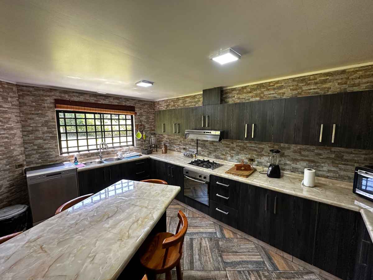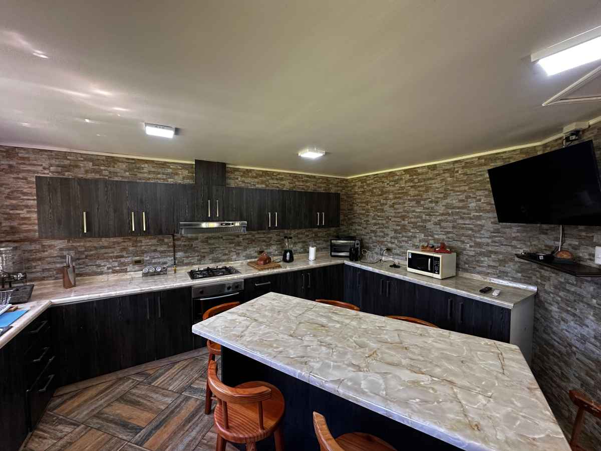 • Cocina full equipada, horno, encimera, extractor, lavavajillas, refrigerador, isla central con desayunador diario.