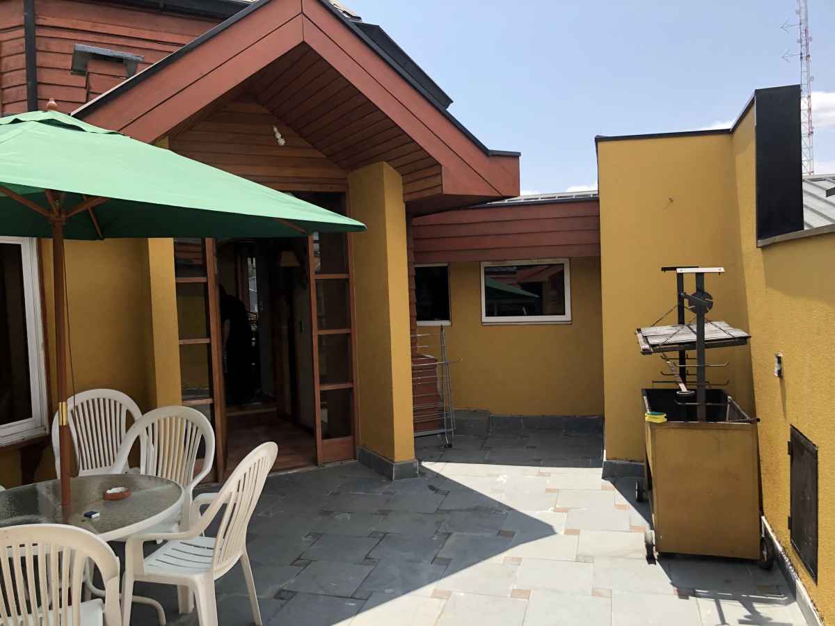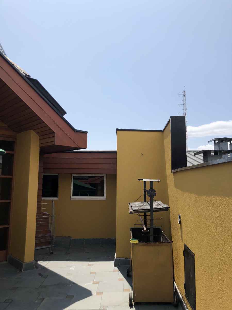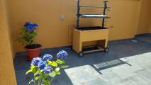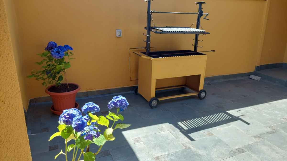 •Amplio patio interior en 5 piso, equipado con mesa de terraza con quitasol, parrilla y plantas