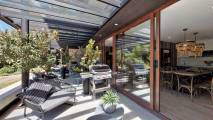 • Amplia terraza con baranda de vidrio, mesa y sillas