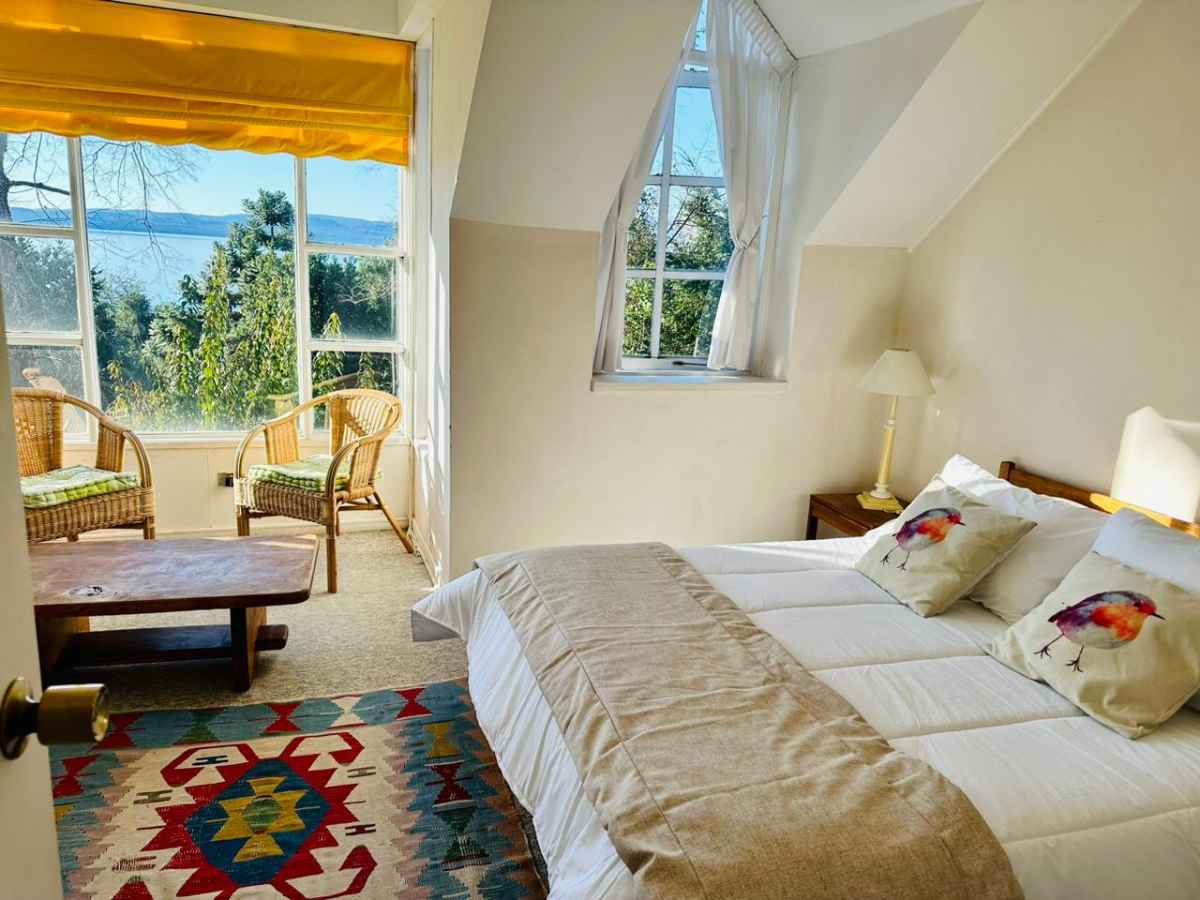 • Dorm 1: Cama matrimonial (2p), 2 veladores, living interior, closet, baño en suite (2do Piso). Gran vista al lago