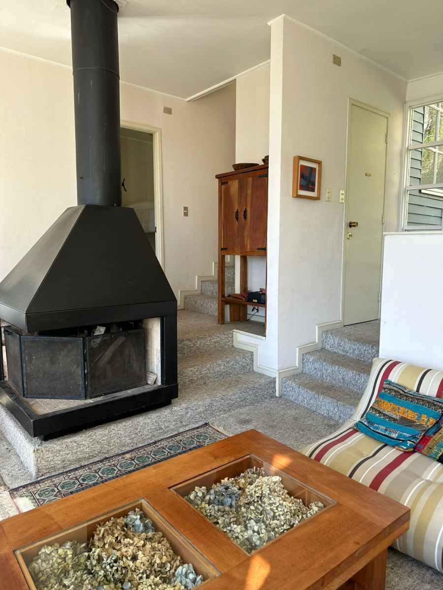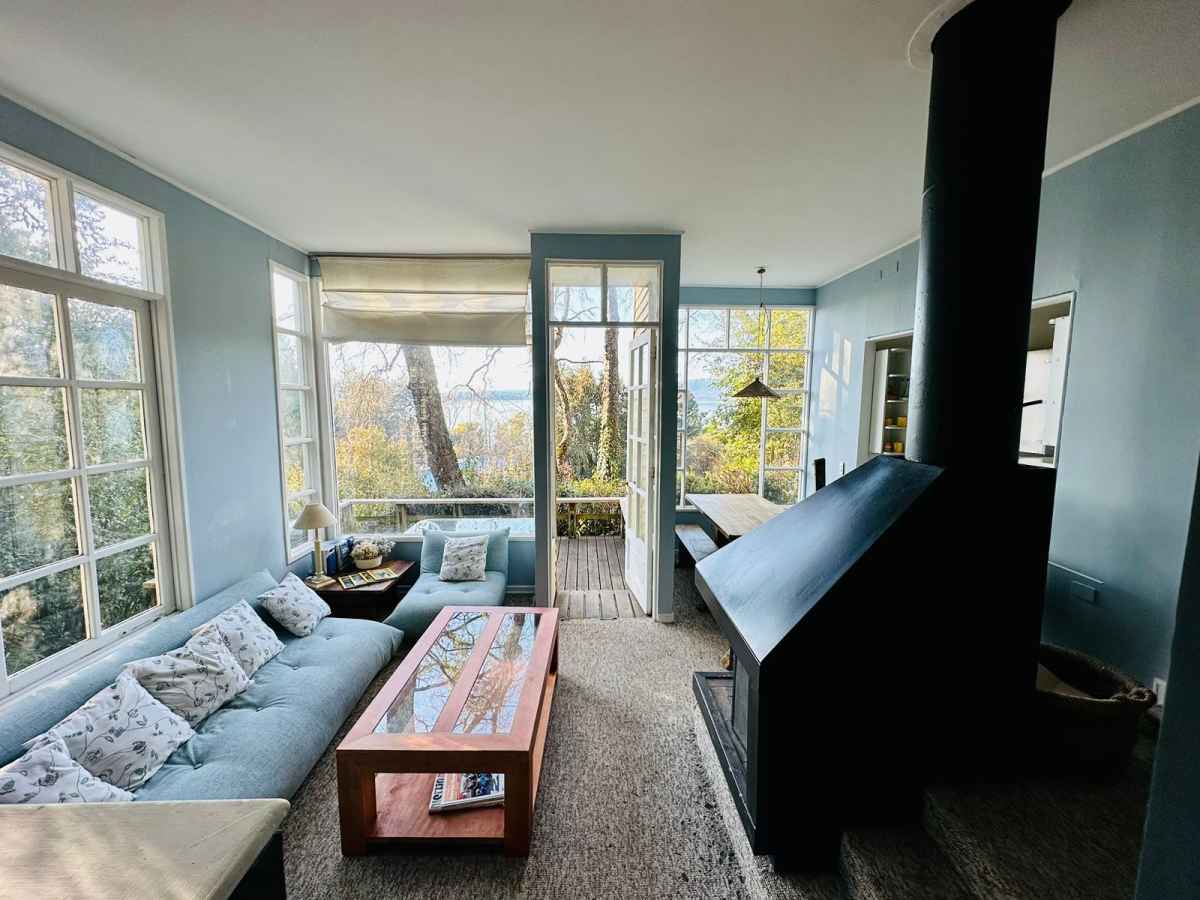 • Living/Comedor: Sofá cama de 3 cuerpos, sofá de 1 cuerpo (2), chimenea, mesa de comedor de madera sólida, mesa de centro, mesas de apoyo. Gran vista al lago